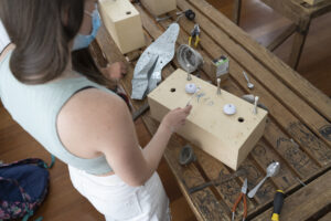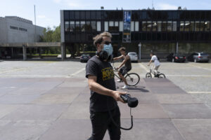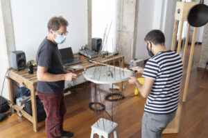 para espicaçar o visível e o audível, para incitar a visão e a escuta sensível do banal, do inútil, da aparição comum, para activar a sonda da utopia e, porventura, estremecer os limites da deliberação do real. Resulta do desafio de redimensionar lugares, conferindo-lhes uma envolvência cénica e sonora, pela intervenção e operação de objectos criados para comportar estas duas dimensões.